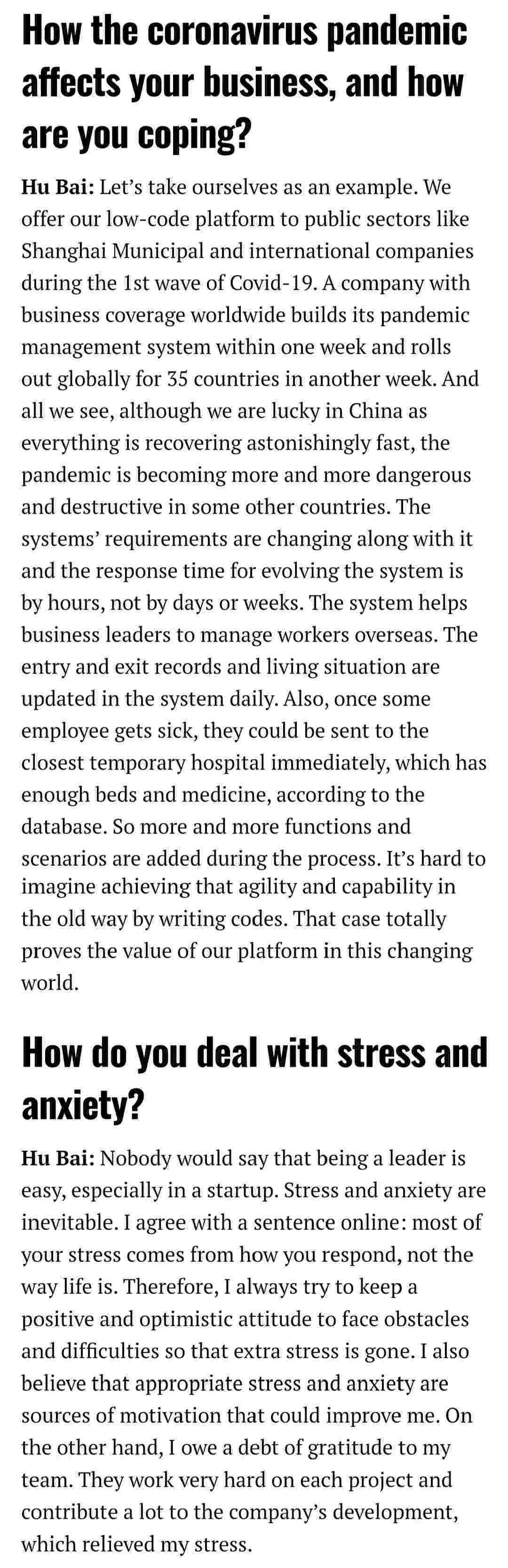 2021年年初,,,爱湃斯科技CEO胡柏受邀接受法媒Startup.info的专访,,,与Startup info的读者分享了自己的创业经历、、、以及低代码平台钱能钱包的创新之处。。。。